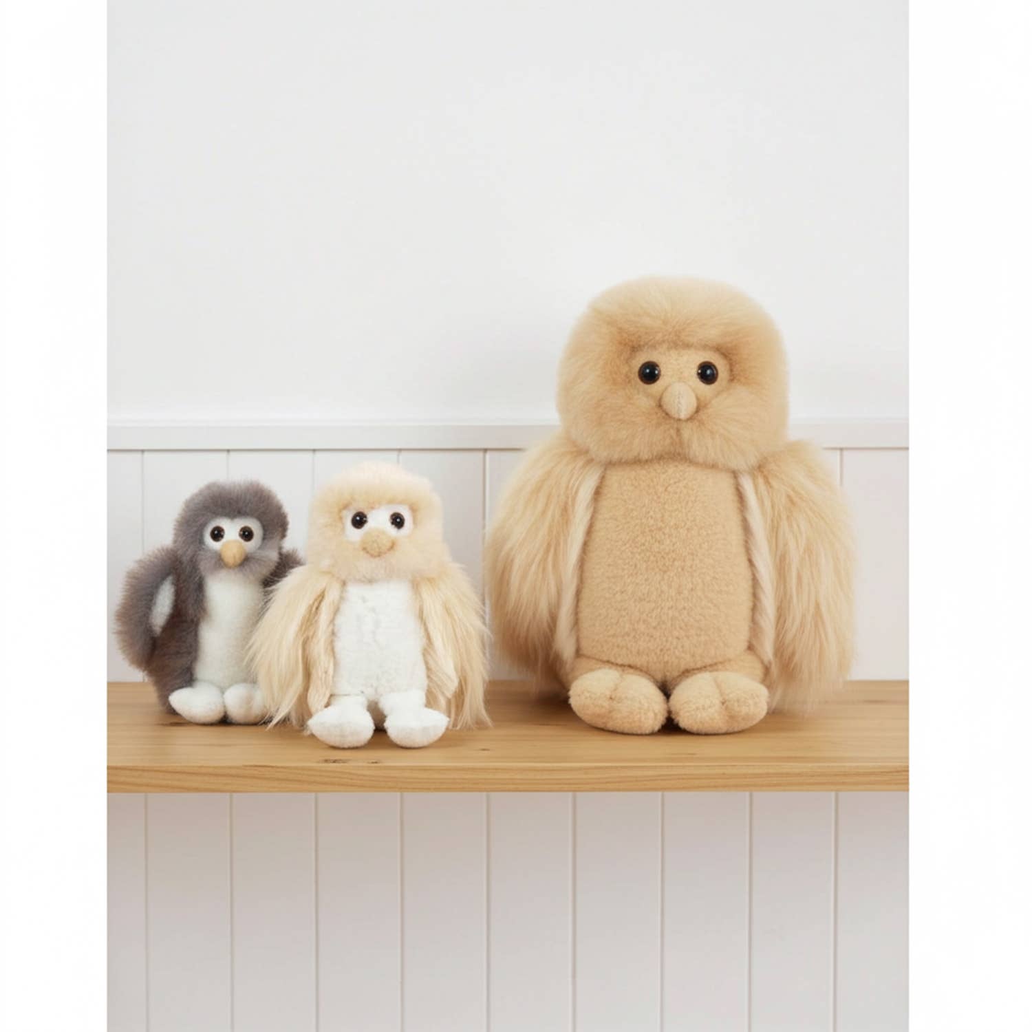 This 8” alpaca owl is handcrafted in Peru from ethically sourced alpaca fleece. Its ultra-soft texture and expressive character make it a standout for curated shelves, while the natural palette of white, blonde, and caramel ensures each piece feels unique and collectible.