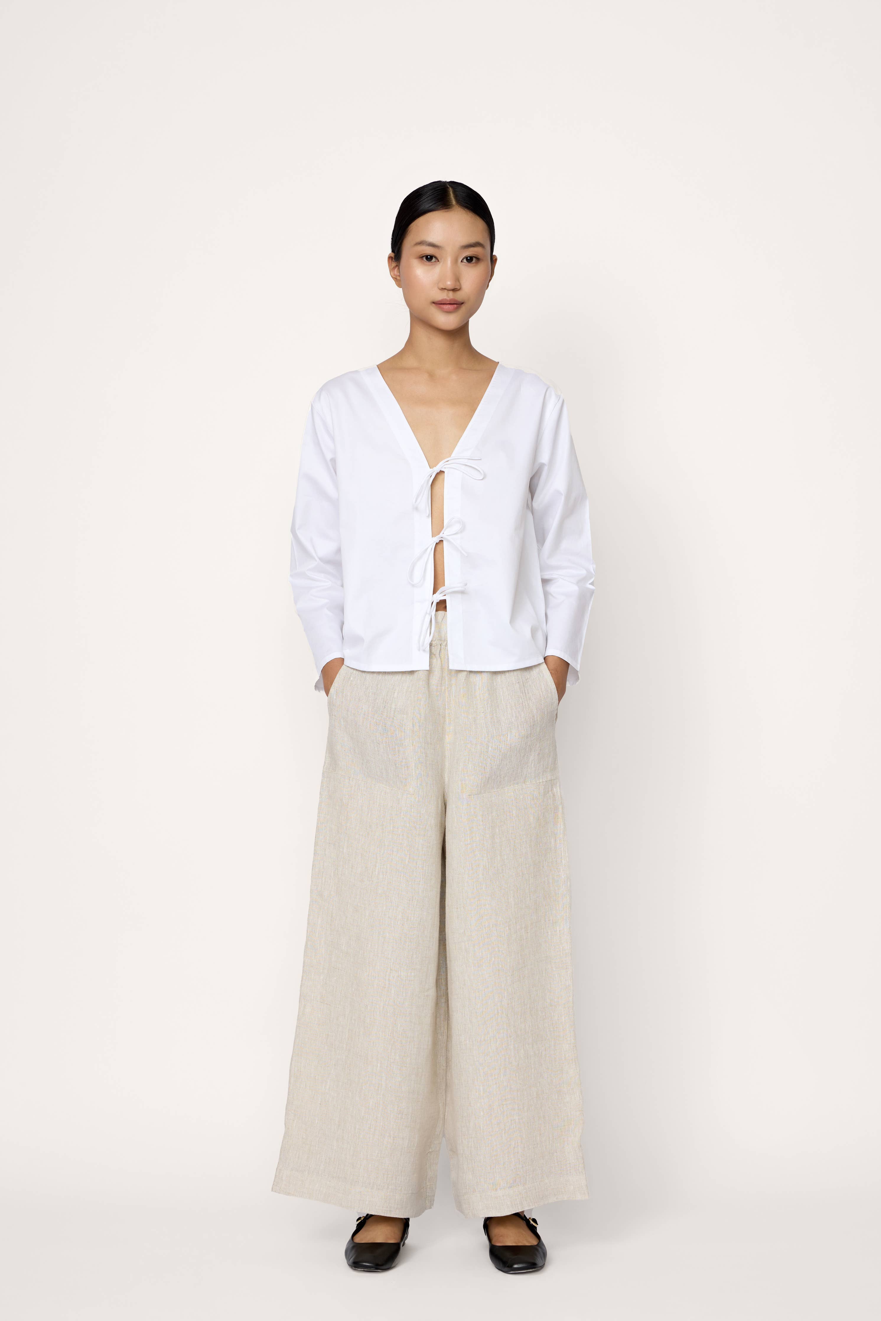 Introducing our Tie Front Blouse, a sophisticated sustainable staple for any wardrobe Crafted from our organic cotton poplin, this shirt exudes effortless style. Pair it effortlessly with our Everyday Pant for a laid-back look.